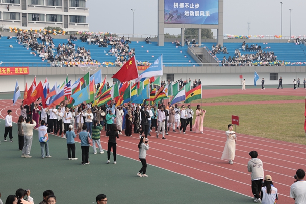继续教育学院方阵精神饱满,以整齐有力的步伐展现着昂扬向上的风貌;国际学院的留学生们身着各国服饰,以异域风情的舞蹈展现着民族特色,充分体现了各国学生之间团结一心的凝聚力;体育学院健美操表演和舞龙舞狮表演将开幕式推向高潮,热闹的旋律和复杂的动作,体现了体院人的激情与活力。